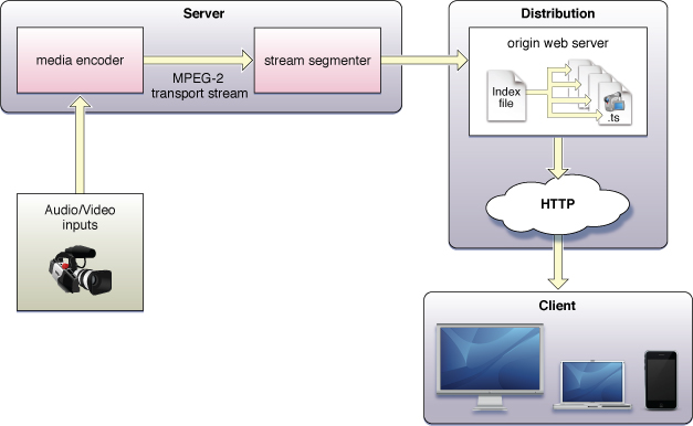 미디어 원본 > 인코더 > 스트림 세그멘터 > 웹 서버 > 플레이어