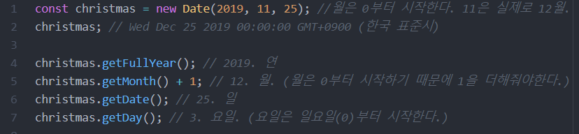 또 getDate()가 일을 가져오는 함수, getDay()는 요일을 가져오는 함수다.